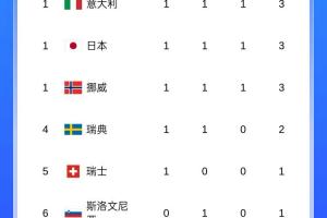 目前,意大利、日本和挪威均是1金1银1铜,并列第一。