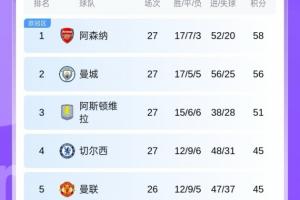 英超积分榜↓