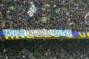 体育资讯3月14日讯 在国米对阵亚特兰大的比赛中,国米球迷拉横幅支持近期深陷争议的巴斯托尼。