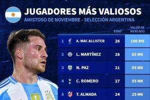 本期阿根廷队球员身价排名: