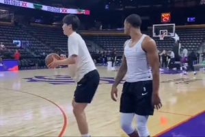 今天状态很棒!迪亚洛首节5分钟 5中5怒轰13分5板2助2断!