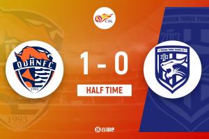 上半场比赛结束,青岛海牛1-0武汉三镇。