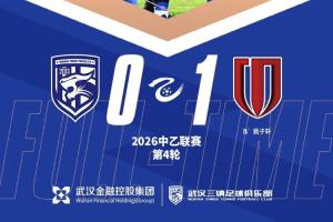 北京时间4月15日19:30,2026怡宝中乙联赛第4轮,武汉三镇B队坐镇汉口文化体育中心对阵成都蓉城B队。上半场双方均无建树。易边再战,李子淦门前垫射高出球门。随后对手反击中率先破门。尾声阶段,谭家烨门前错失良机。最终,武汉三镇B队主场0-1不敌成都蓉城B队。