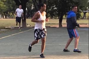 他在狱中参与五人制足球赛,和狱友、狱警同场竞技。
