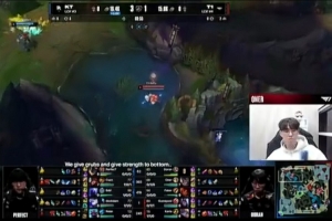 Oner:玄準哥第一局看来是很紧张吧,大一直都不中啊玄準哥。虽然我跳过去了,但是我其实去gank了好几次,大概去gank了2次吧,但是2次大都没中啊!我们玄準哥。所以想着,怎么回事?怎么回事?稍稍有了这样的想法。玄準哥说,把闪打掉了,他没闪,来一下就去了的,但是大没中呢。这是有可能的。其实是不能这样的,原来就是得大到的,所以最后gank还是没能成功,有点可惜。