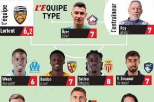 体育资讯12月1日讯 法甲第14轮战罢,法媒队报评本轮联赛最佳阵,托万、维阿、托利索在列。