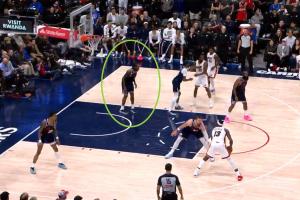 滑了一步!肯纳德面对阿门后退时踩到中线 被吹回场违例