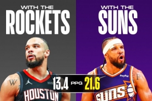 代表太阳,本赛季场均21.6分3.0篮板1.8助攻1.4抢断。