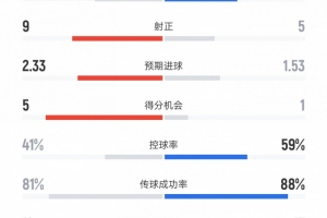 控球率——41%比59%