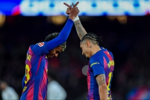 体育资讯12月22日讯 西甲第17轮巴萨客场2-0击败比利亚雷亚尔,拉菲尼亚和亚马尔各入一球。赛后《世界体育报》表示,冬季冠军可以让巴萨以十分乐观的心态迎接2026年的到来。