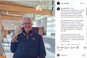 伊恩·拉什社媒晒出自己举起酒杯的照片,并写道:“现在感觉好多了——衷心感谢整个利物浦大家庭以及所有联系我的朋友们发来的美好祝福与支持,这对我而言意义非凡。