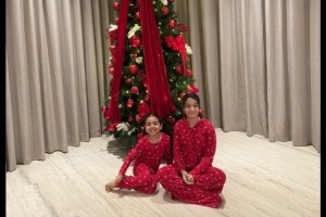 萨拉赫在社媒中配上了两个女儿与圣诞树的照片。