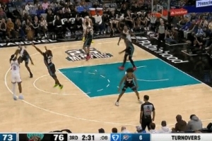 你惹他干嘛!巴恩斯一直喷哈登 随后被晃翻坐地 哈登还命中三分