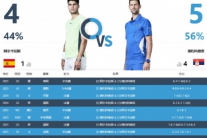 据统计,这将是两人职业生涯的第10次交手。此前9次交手,德约科维奇5胜4负占据优势。
