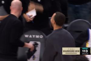 GIF-库里大笑着冲进场内撞胸庆祝