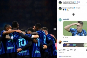踢满全场的国米队长劳塔罗赛后更新社媒,晒出全队相拥庆祝的合影,并配上了“🖤💙🙏”的emoji。