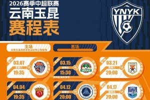 2026怡宝中超联赛云南玉昆赛程表