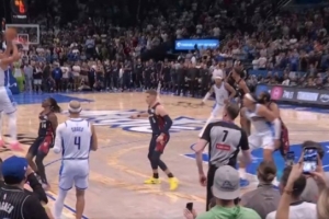 撕裂防线!爱德华兹突破扭身抛投打成2+1 倒地激情庆祝