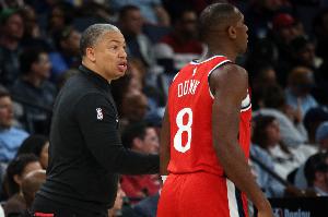这种球得把握住!泰森底角大空位三分命中 骑士追到差1分!