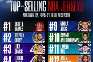 NBA官方晒出2025-26赛季加拿大球衣销量TOP15的球星,具体如下: