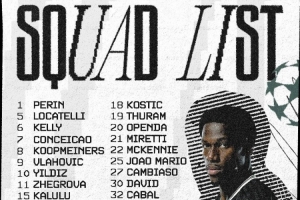 尤文欧冠客战博德闪耀名单: