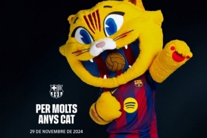 体育资讯11月29日讯 巴萨吉祥物CAT迎来一岁生日,巴萨官方社媒发文祝贺。