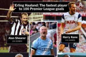 据The Athletic数据统计,哈兰德打进英超百球用了111场比赛,达成这一里程碑的速度要比任何球员都快。