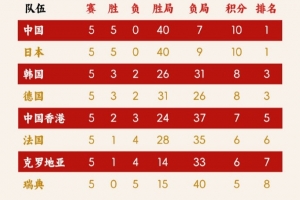 体育资讯12月5日讯 国际乒联混团世界杯结束第六比赛日争夺,中国、日本继续保持全胜。积分榜如下