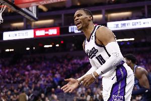 上半场比赛,威少出战15分半,投篮4中2,三分2中1,得到5分6助攻1抢断,正负值+19。