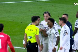 根据赛后裁判报告,替补席的恩德里克也在此次事件中抗议染红,这意味着短时间内主裁判向皇马掏了二红三黄,共计五张牌。