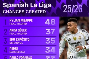 体育资讯12月16日讯 Squawka统计了球员本赛季在西甲创造机会的次数,并列出榜单,姆巴佩48次居首,居莱尔37次第二。