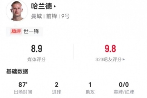 体育资讯12月21日讯 曼城在本轮英超对阵西汉姆联,哈兰德本场数据如下: