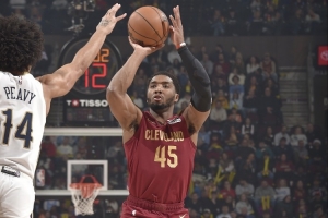 第三节,米切尔单节6中6砍下13分2篮板2助攻,在他的发挥带动下,骑士第三节内外开花轰下41分,将分差扩大至20分左右。