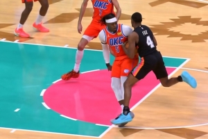 GIF-雷霆挑战多特这个防守犯规,但腿部有接触,挑战失败