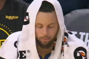 GIF-勇士失误被打反击2+1 库里在替补席无奈