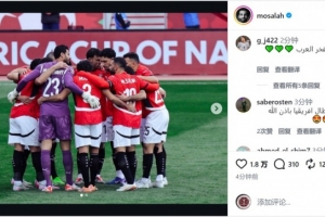 萨拉赫更新社媒动态,晒出埃及球员们在球场上搭肩拥抱、围成一圈的照片,庆祝球队晋级淘汰赛。