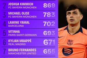 体育资讯12月31日讯 数据网站Squawka盘点了2025年五大联赛完成进攻三区传球次数榜,其中佩德里居首,具体如下: