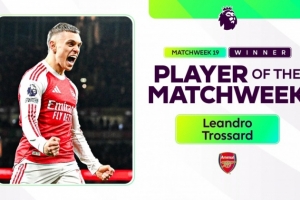 体育资讯1月3日讯 英超官方宣布,阿森纳球员特罗萨德当选第19轮最佳球员。