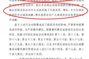 四川市足协结合公安机关对日火瓦体的行政处罚,对其处以禁止参加四川省各级体育部门及足协举办的足球赛事活动5年(2025年11月16日至2030年11月15日)的处罚。