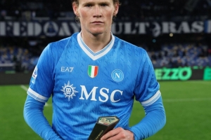 第54分钟,那不勒斯左侧角球机会,诺阿·朗传中,麦克托米奈头球破门扳回一城。