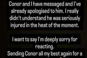 马丁内利通过社交媒体发文致歉,表示自己当时并没有意识到布拉德利受到重伤,并祝愿其早日康复。