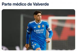 根据皇家马德里医疗服务中心今天对我们的球员费德·巴尔韦德进行的检查结果,他被诊断为右腿半膜肌受伤。待观察其恢复情况。