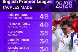 本赛季英超抢断榜: